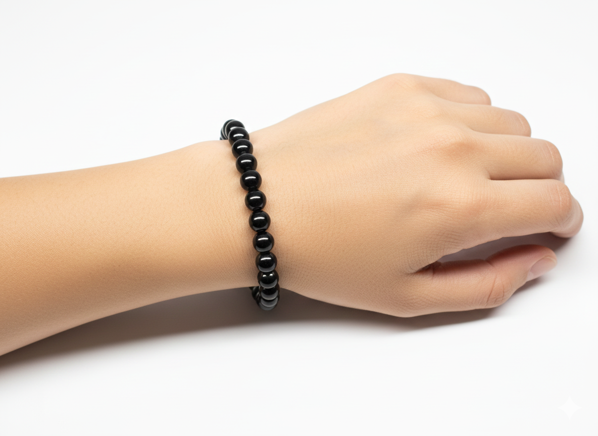 TURMALIN CZARNY - kulki 6mm, bransoletka z kamieni nawlekanych na rozciągliwą gumkę